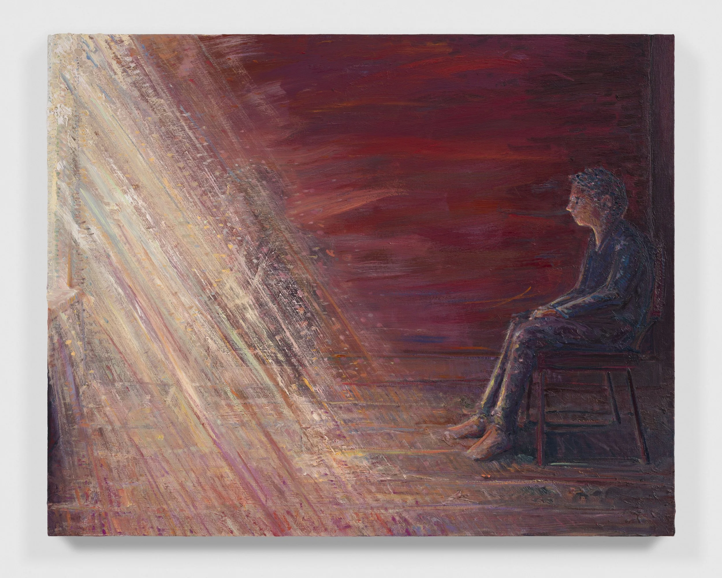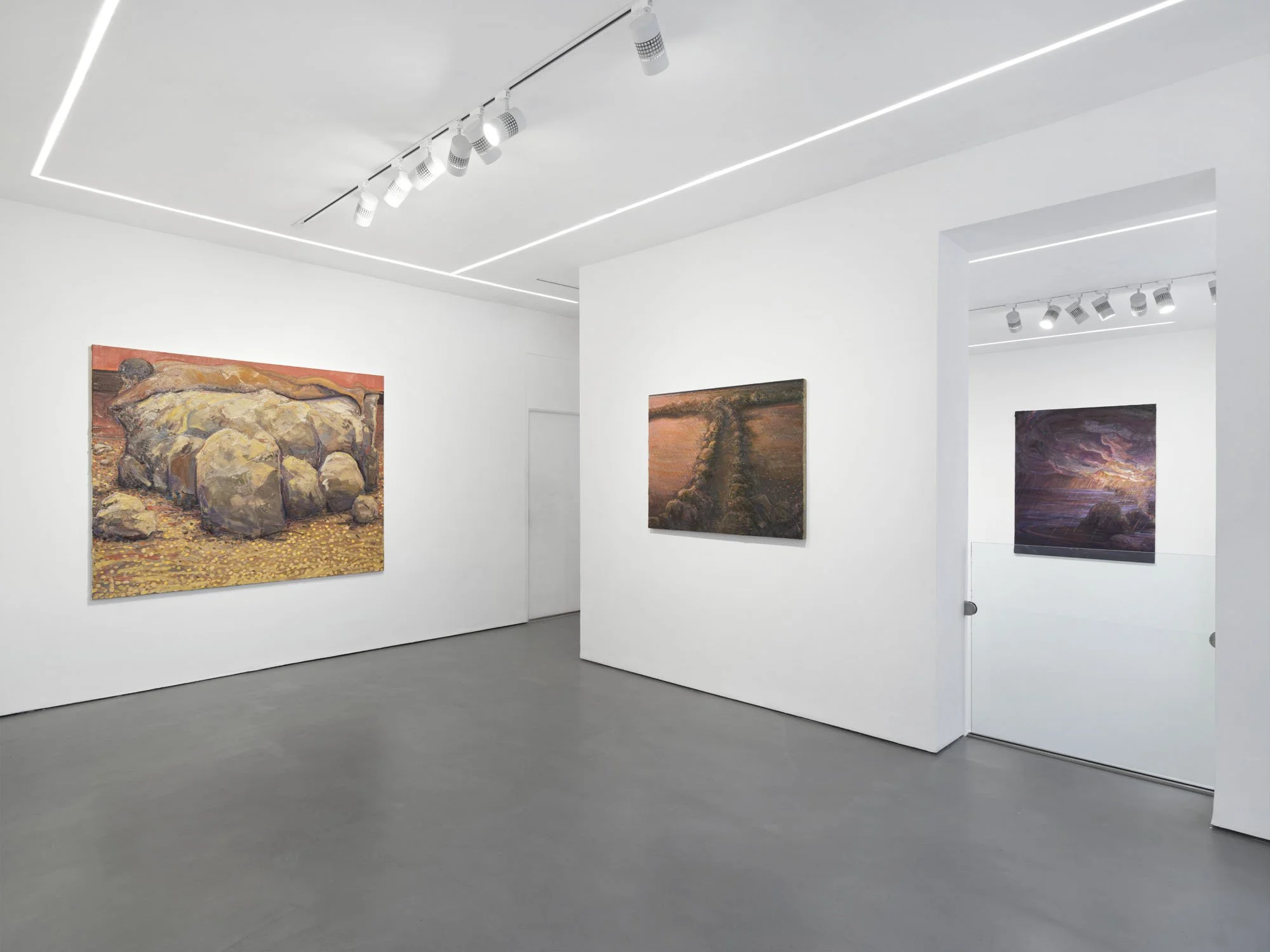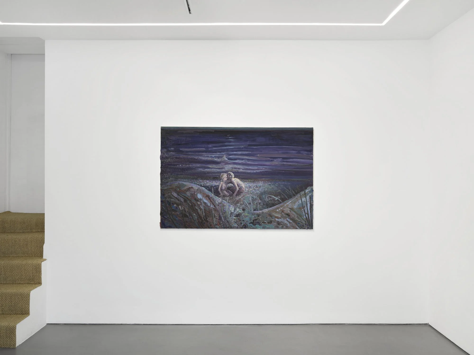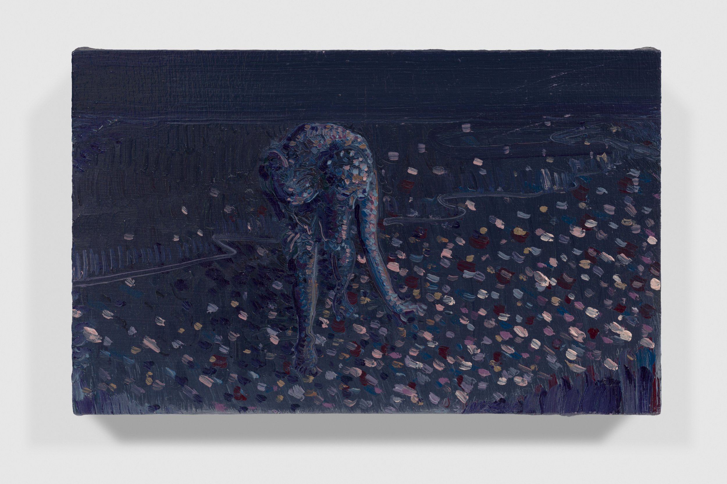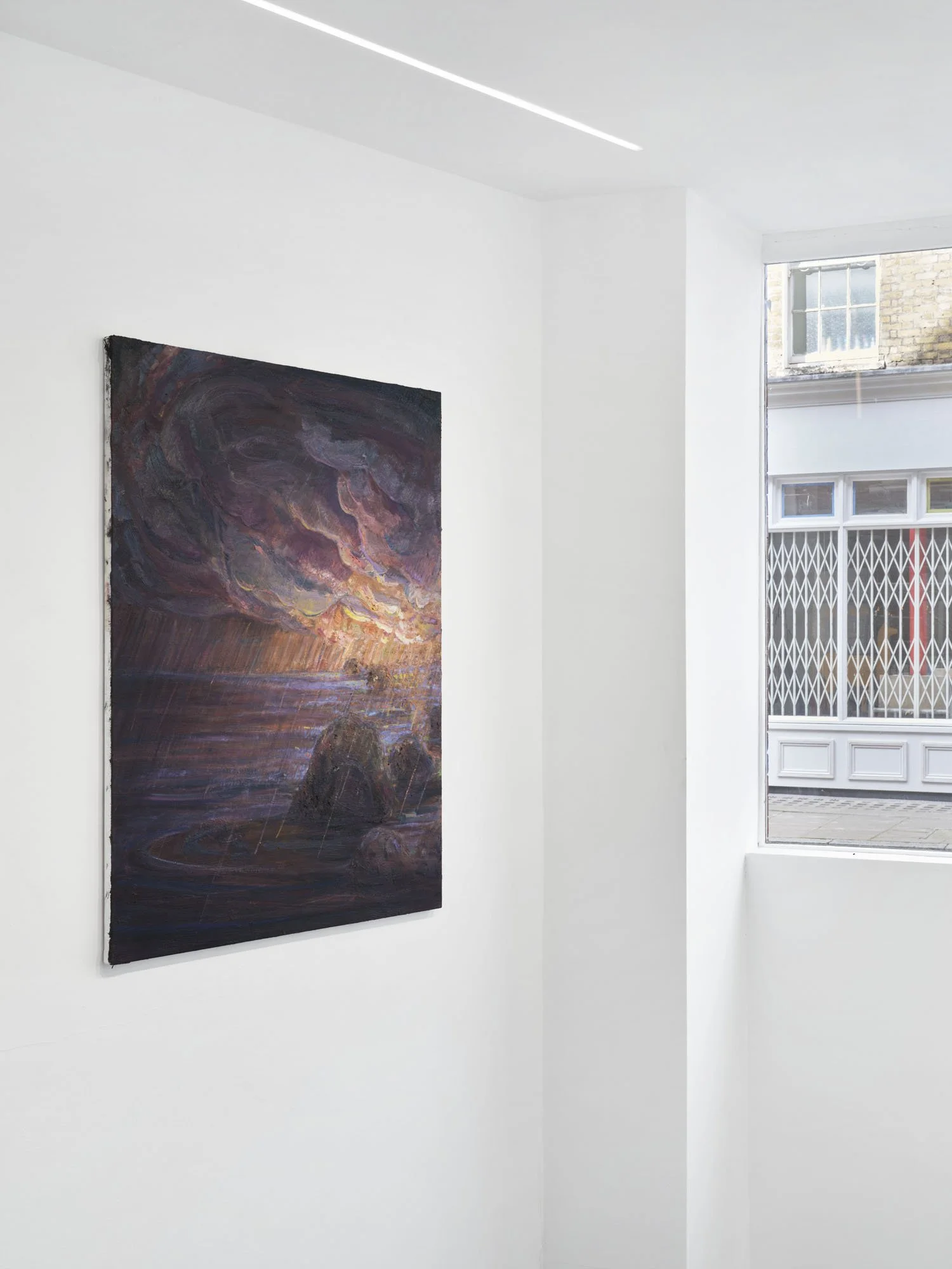There is an architecture to Lai’s compositions, an accretion of meditatively applied, short marks that build the structure of the image. They’re layered alongside longer, fluid gestures and dragged, dry-brush striations, achieving a sensation of both solidity and reverie- an environment in flux. There is an earthiness to the base of his expansive palette, a grounded bedrock that spirals out into vivid illumination. A closer inspection of his surfaces reveals hues that may present as incongruous in principle, but harmonise amidst the sheer variety of mark and tone. Lai’s range of application entails his paintings arrive at two speeds; their ferocity balanced by their steady consideration. The immediacy of their atmospheric light and dynamic brushwork gives way to the underlying stillness and emotional sensitivity at the heart of each scene.