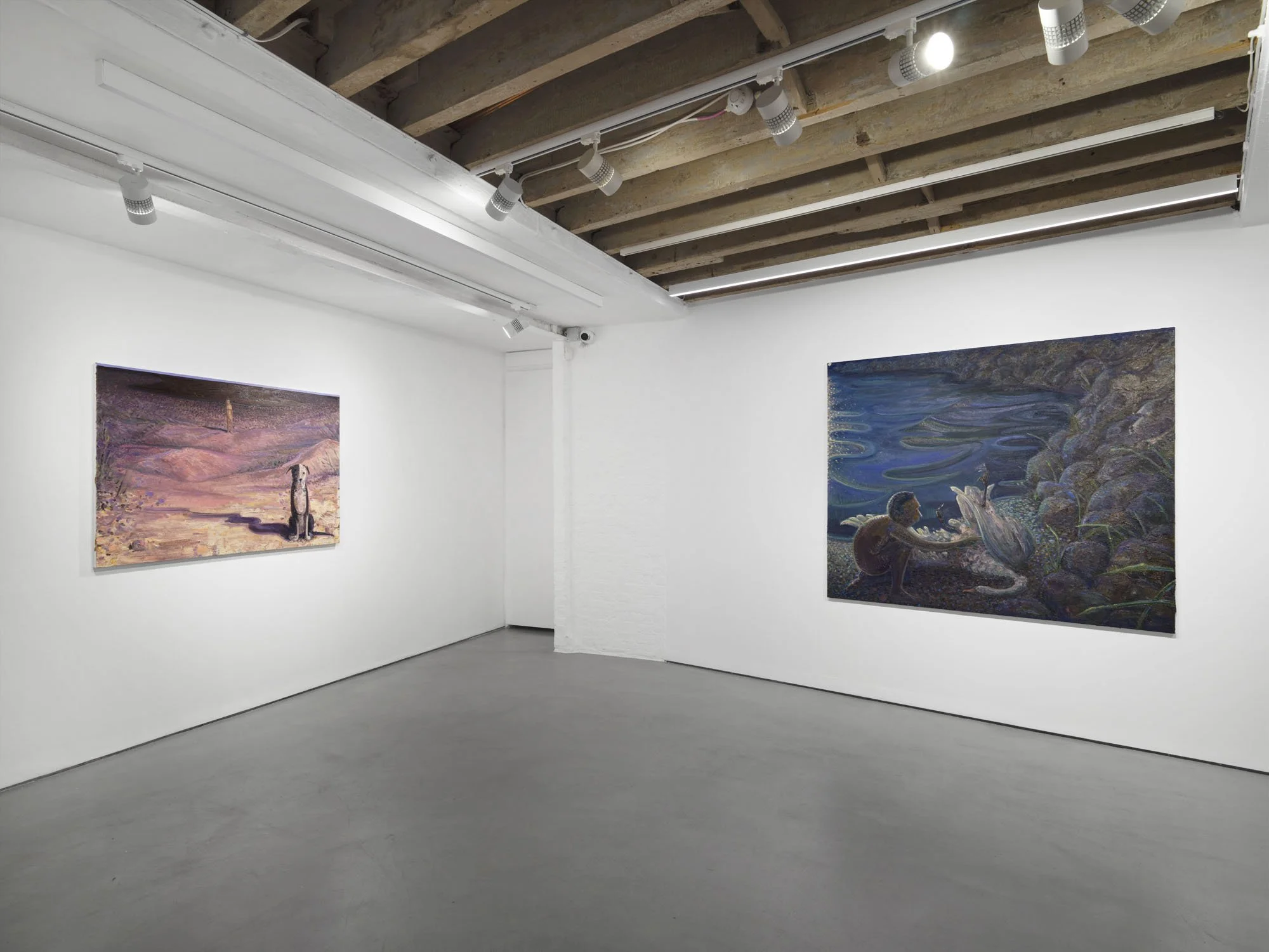 Lai walks there, sometimes by himself, or with his wife and dog. The settings for his paintings are all drawn from life, but a given picture’s success in his eyes is measured by its capacity to develop autonomy and graduate from memory into imagination. For Lai, the landscape and his home are stages for projection, familiar places to facilitate a transition into the curious uncertainty of a rich inner world. His routine forms a daily ritual wherein he can contemplate the relationships and environments at the centre of his being before beginning an exploration of them in paint.